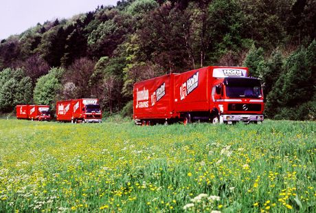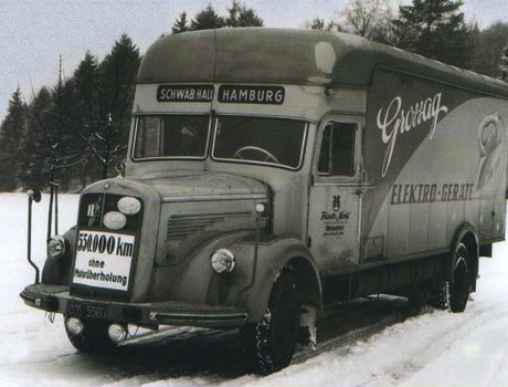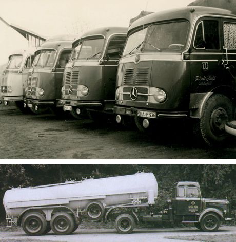 in den Anfangsjahren des Wirtschaftswunders startet der Fuhrbetrieb mit einem Holzvergaserfahrzeug erneut durch. Ende der 50er Jahre ist der Betrieb auf 12 Fahrzeuge (Silo-, Koffer-, Planen-, Kipper- und Tankzüge) angewachsen.